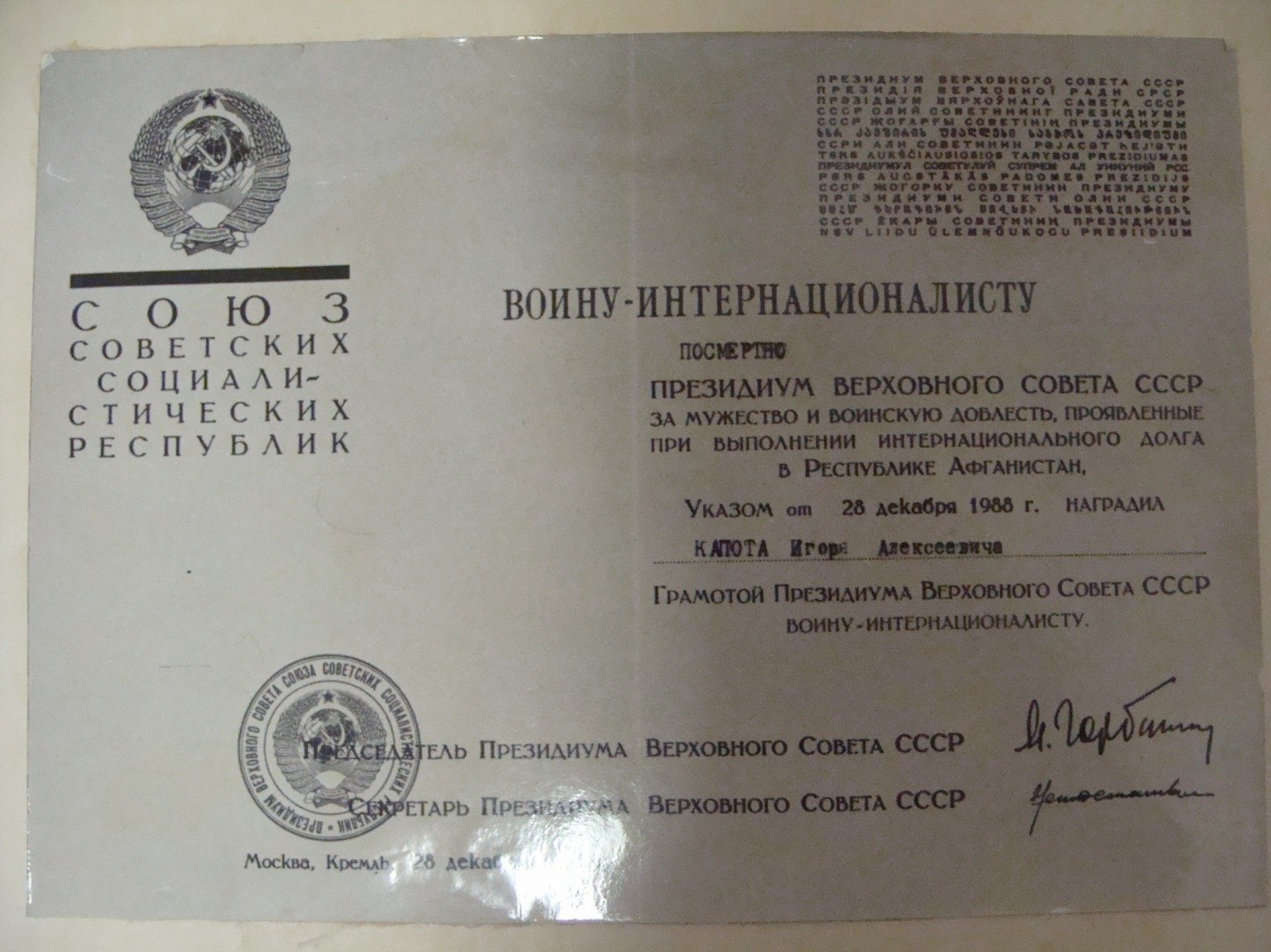 Капота Игорь Алексеевич, младший сержант, разведчик 4 группы 3 роты.