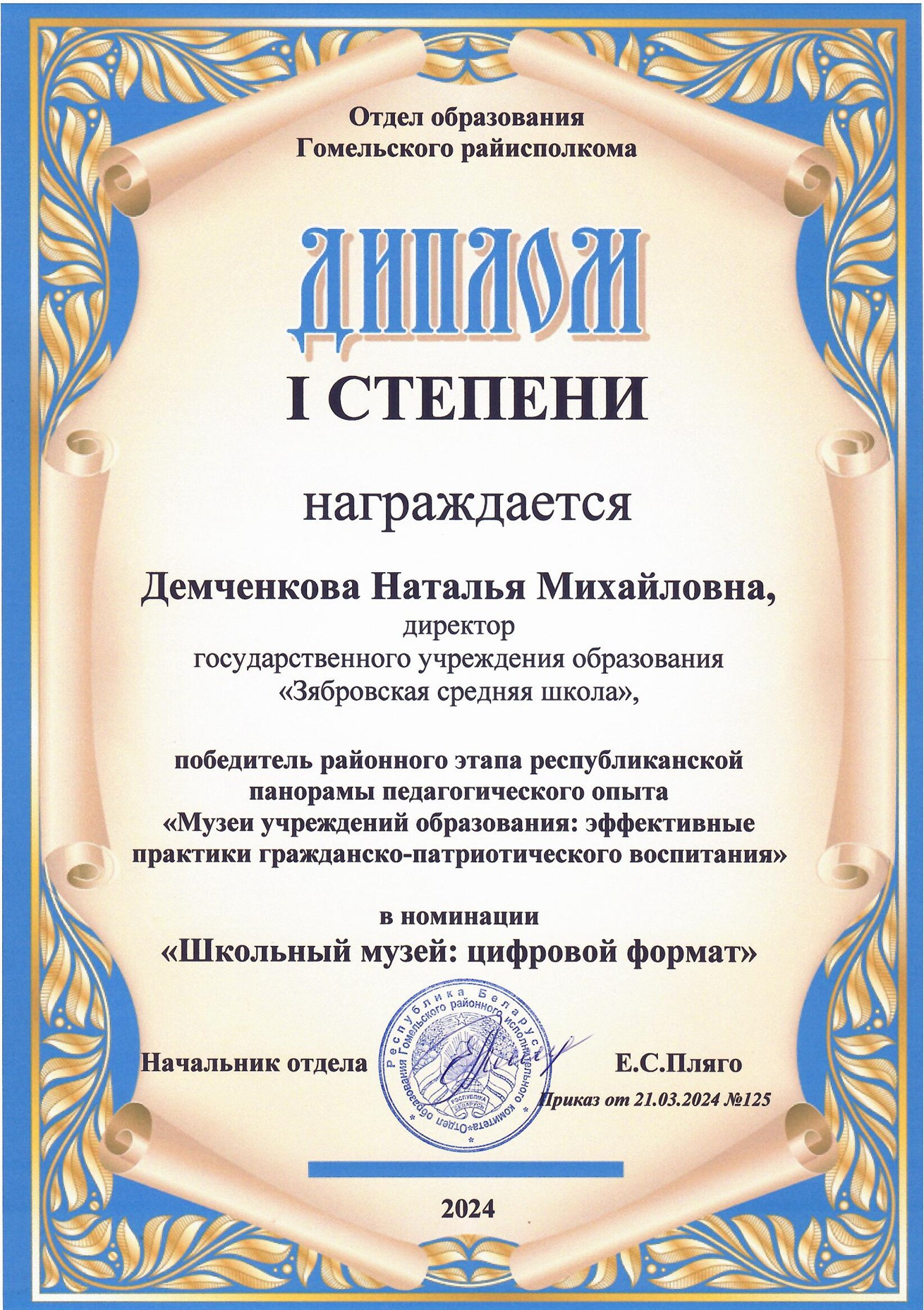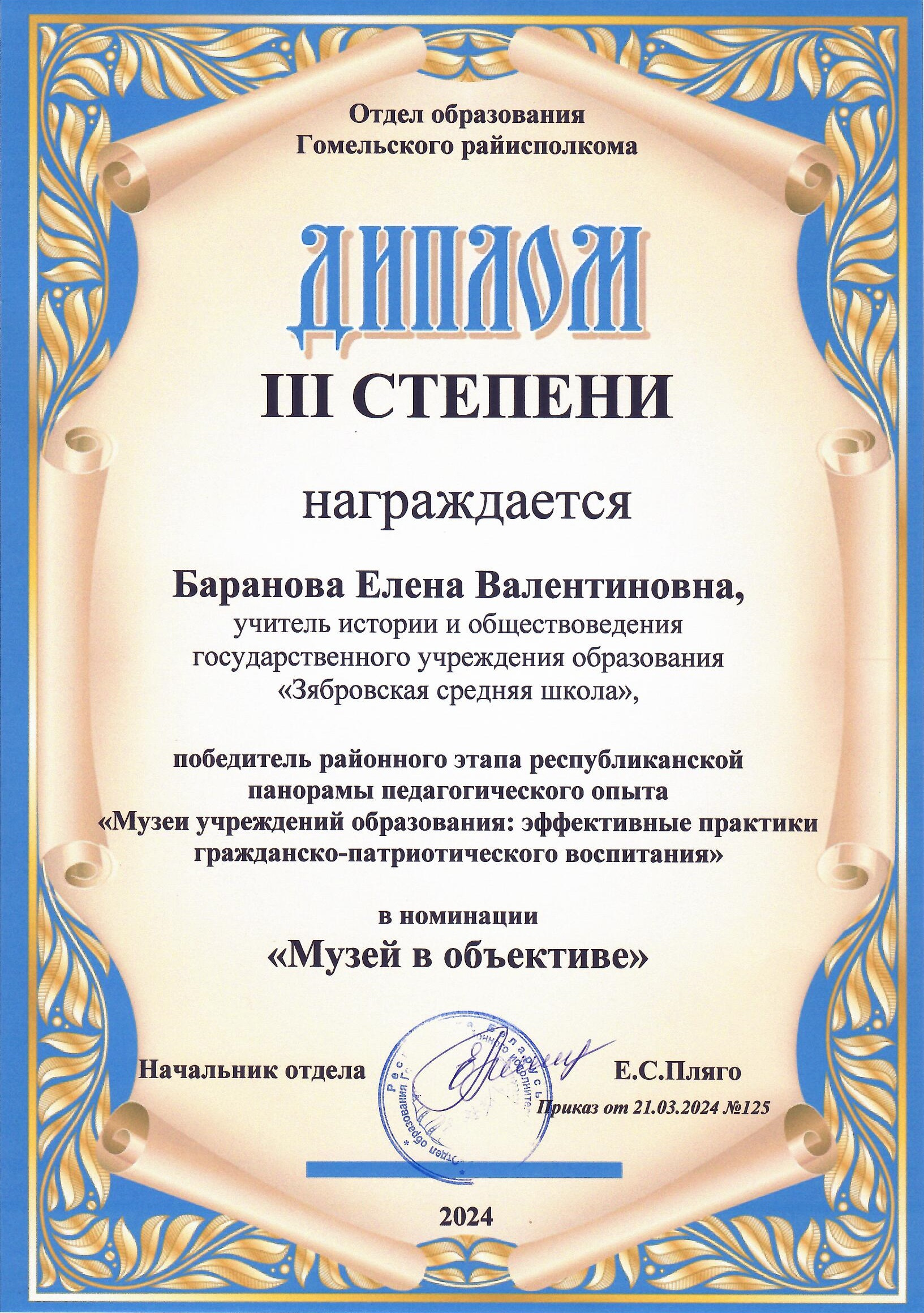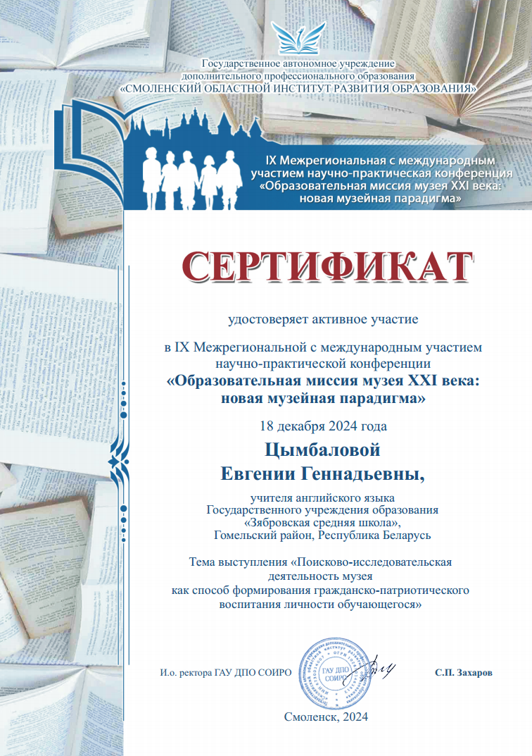 Руководитель музея с 1 СЕНТЯБРЯ 2024 по н.в.